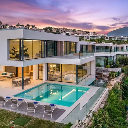 Villa Sandie Front Golf Cinema Room Sauna Jacuzzi Kids Playground est situé à seulement 1 km de Club de golf El Paraíso et offre une piscine en plein air, garantissant un séjour relaxant. Cette villa comprend un parking et un patio avec des vues sur les montagnes.